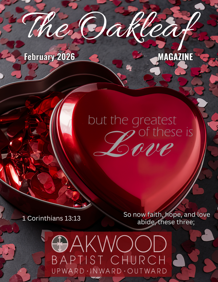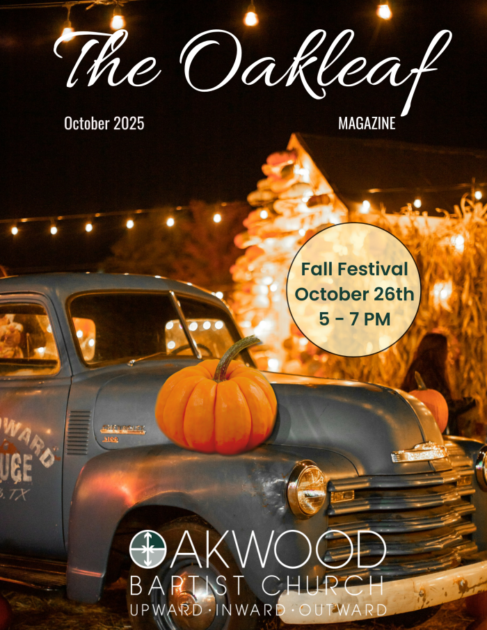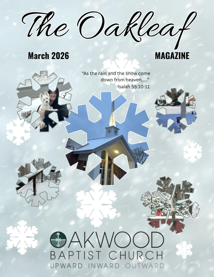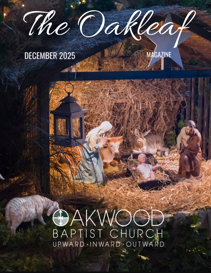 Each month OBC publishes The Oakleaf Magazine to inform members and guests about regular scheduled meetings, upcoming events, as well as monthly activities, weekly Sunday school and small groups meetings, young adults, youth, children's activities, and more. Please see the link below to access the latest edition of The Oakleaf Magazine, as well as past editions.